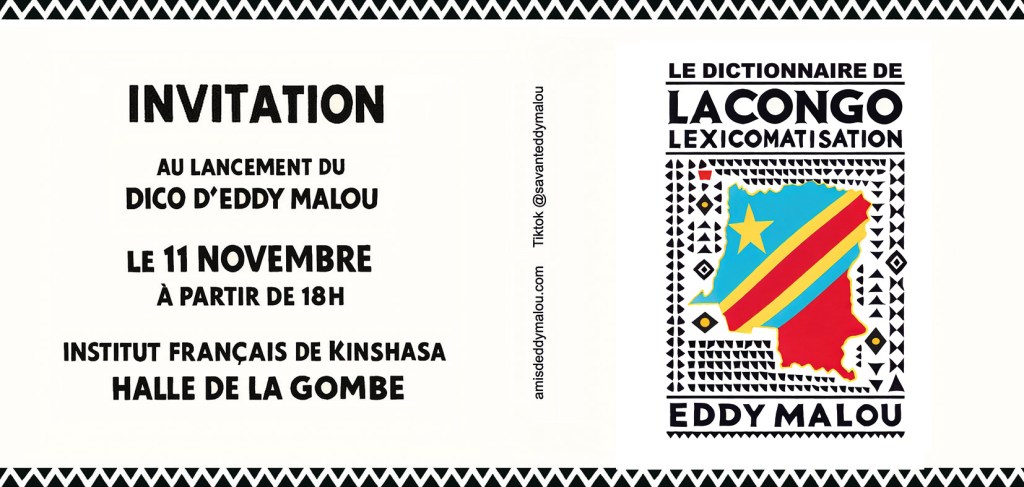 Malou est très fier de vous inviter au lancement de son « Dictionnaire de la Congolexicomatisation », le 11 novembre prochain dès 17h, à l’Institut Français de Kinshasa Halle de la Gombe.